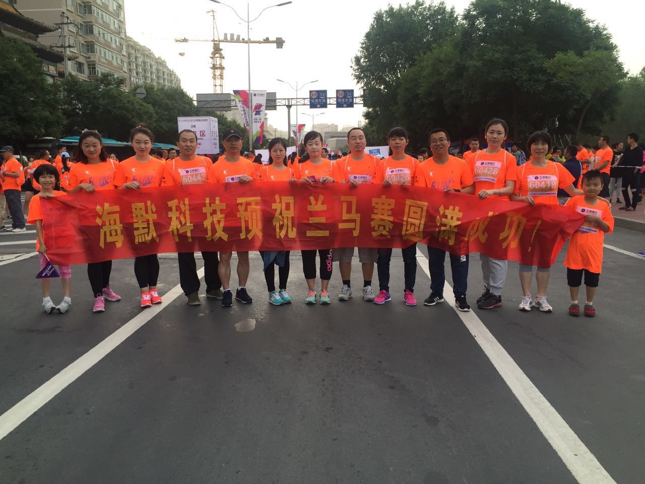 蘭州海默科技參賽員工在工會的組織下,踏著涼爽的晨風,也陸續來到了規定區域,等待蘭馬開跑,為蘭馬助威。他們有的帶著妻兒,有的帶著朋友,都希望在本次蘭馬上留下美好的回憶。隨著橘色人流的涌動,海默科技的參賽隊伍也慢慢跑動起來,這支隊伍經過雁灘黃河大橋、蘭州體育公園、平沙落雁,并最終達到終點金昌北路北段終點,完成了長達5公里的mini馬拉松賽程。
